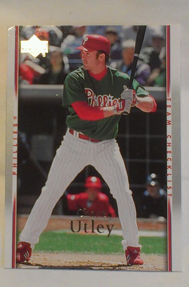 Chase Utley is in the lineup sporting the Phillies St Pats Day Green Uni - similar to the one he is wearing on his 2007 UD card.